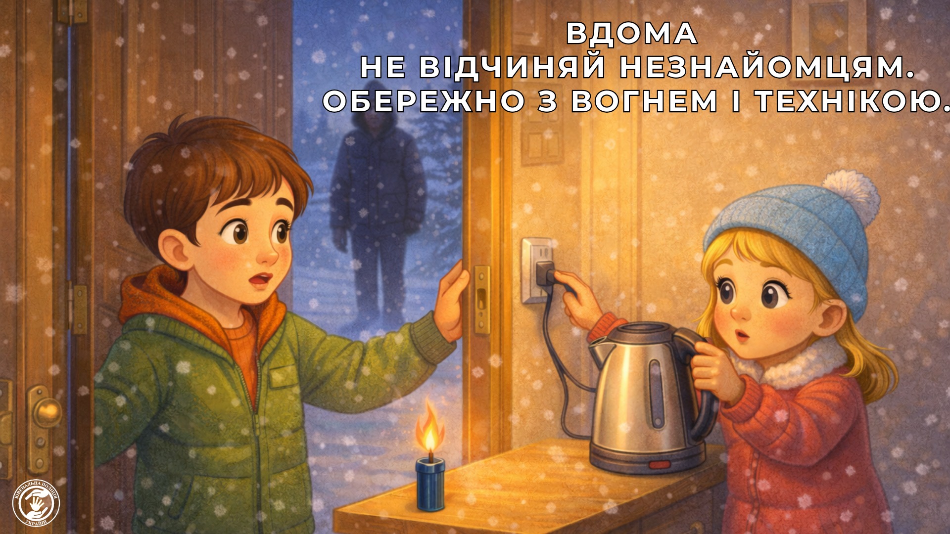 Залишаючись удома без дорослих, не відчиняйте двері незнайомцям 🚪❌, не користуйтеся електроприладами без дозволу та не експериментуйте з вогнем 🔥. Пам’ятайте: обережність — ваша найкраща суперсила 🛡️
