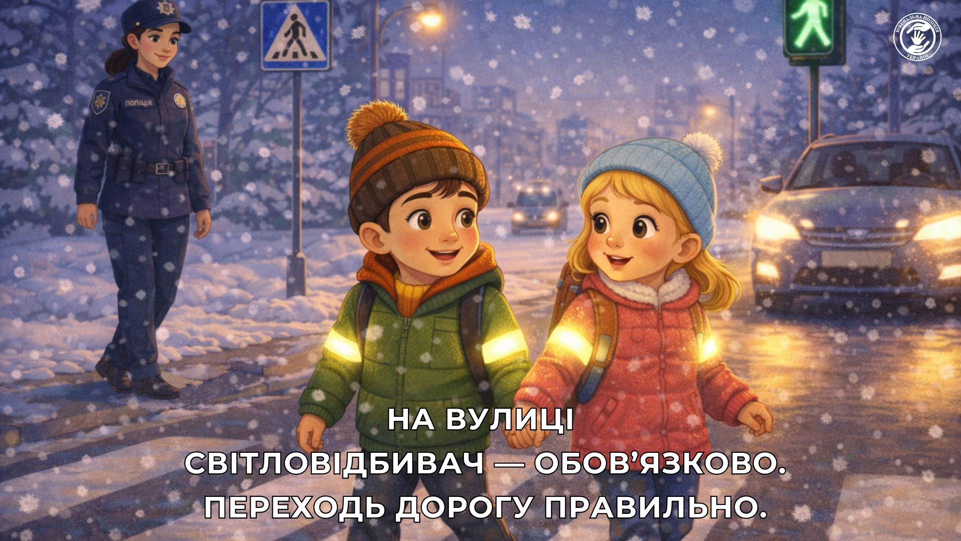 Будьте уважними пішоходами, особливо в сутінках 🌙. Використовуйте світловідбивні елементи ✨, переходьте дорогу лише у дозволених місцях і не відволікайтесь на телефони 📱❌